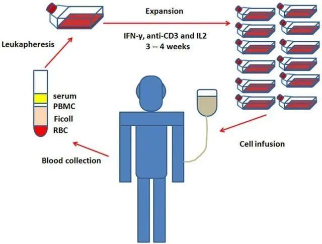 增強(qiáng)型CIK細(xì)胞回輸:在通過常規(guī)治療盡可能使腫瘤負(fù)荷降低后,回輸增強(qiáng)型CIK細(xì)胞給患者(兩周一次,至少4次),可有效殺傷殘留的腫瘤細(xì)胞,抑制腫瘤的復(fù)發(fā)和轉(zhuǎn)移。