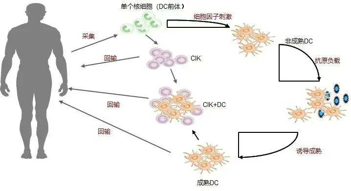 腫瘤的有效治療依賴于手術(shù)、放療、化療和DC-CIK細(xì)胞免疫治療等方法的有效配合,即綜合治療。DC-CIK細(xì)胞免疫治療指通過各種方式激發(fā)和增強機體的免疫功能,通過以下幾方面發(fā)揮抗腫瘤治療中的作用。