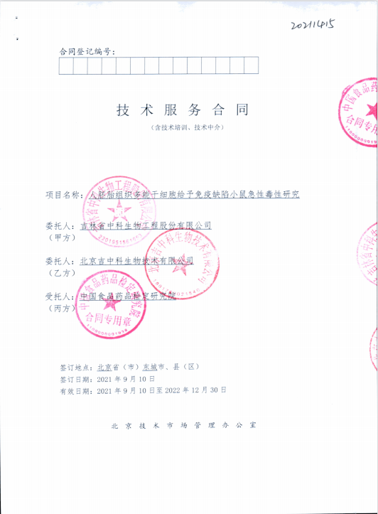 2021年9月10日,中國食品藥品檢定研究院對吉林中科生物工程股份有限公司的人胚胎組織多能干細胞進行急性毒性評價!