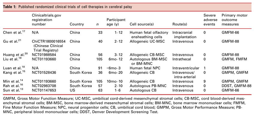 ?? 本出版物評(píng)估了干細(xì)胞治療腦癱的療效