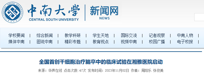 湘雅醫(yī)院:開展干細(xì)胞治療缺血性腦卒中偏癱后遺癥的臨床試驗