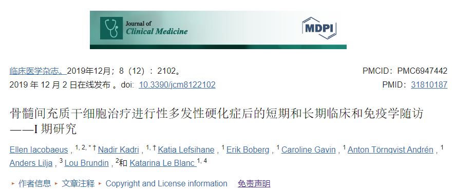 最近,研究方案已經(jīng)建立,用于使用自體BM-MSC治療多發(fā)性硬化癥的隨機(jī)、雙盲、交叉I/II期臨床試驗。這些研究是在幾個國家試驗中進(jìn)行的。該研究的結(jié)果尚未公布。