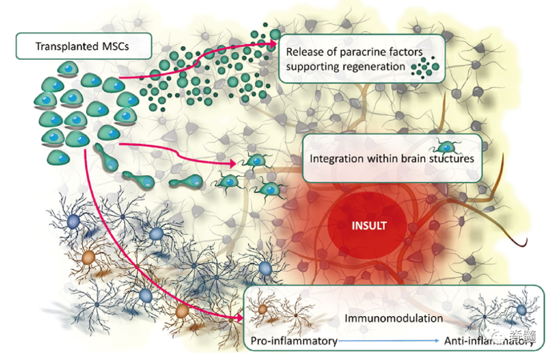 間充質(zhì)干細(xì)胞可通過歸巢、分泌一系列細(xì)胞因子和生長(zhǎng)因子以及分泌外泌體等多種形式來發(fā)揮造血支持,免疫調(diào)節(jié)和組織修復(fù)再生等生物學(xué)功能。