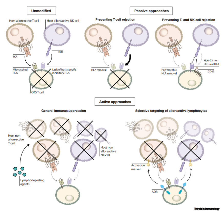 ▲ 主動的方法可以通過非選擇性抑制宿主免疫(清除宿主淋巴細(xì)胞,包括 CD52/CD38 單克隆抗體和 FOLFOX);