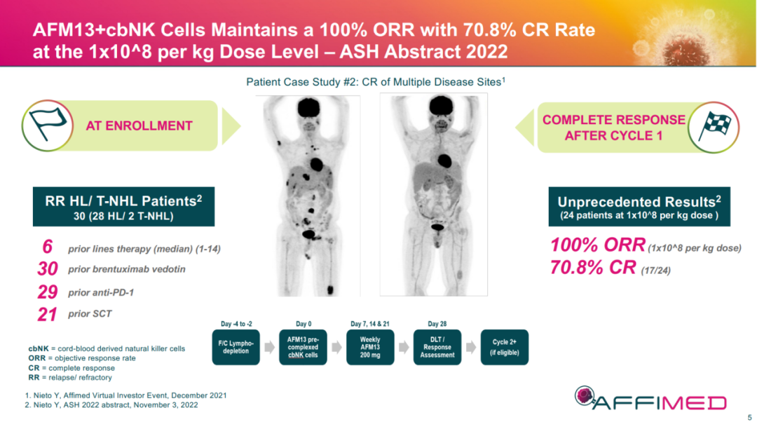 此前,海外公司Affimed公布了一項(xiàng)1/2期臨床試驗(yàn)的積極數(shù)據(jù),這一研究中接受NK細(xì)胞聯(lián)合治療的患者達(dá)到了100%的客觀緩解率!