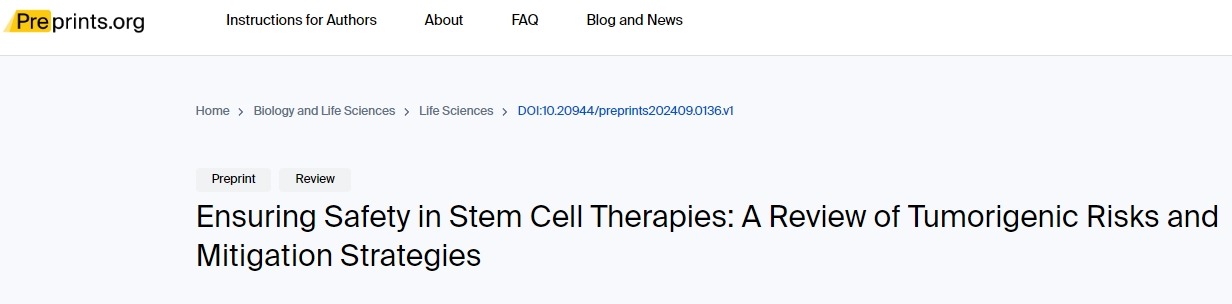 參考資料:BS, S.; KH, C.; BC, T. Ensuring Safety in Stem Cell Therapies: A Review of Tumorigenic Risks and Mitigation Strategies.?Preprints?2024, 2024090136. https://doi.org/10.20944/preprints202409.0136.v1