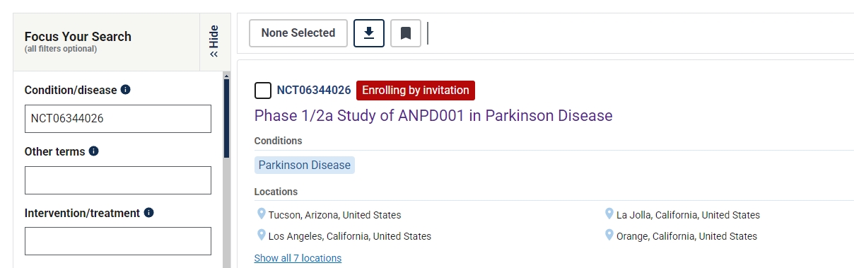 ANPD001是美國(guó)最先進(jìn)的治療帕金森病的自體研究性新細(xì)胞療法。有關(guān)1/2a期試驗(yàn)的更多信息,請(qǐng)?jiān)L問(wèn)clintrials.gov (NCT06344026)。