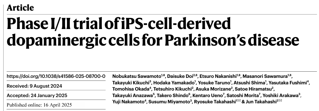 2025年4月19日,京都大學(xué)醫(yī)院和日本iPS細(xì)胞研究與應(yīng)用中心(CiRA)最近開展的一項(xiàng)1/2期臨床試驗(yàn),其自主研發(fā)的多巴胺能祖細(xì)胞取得了積極成果。