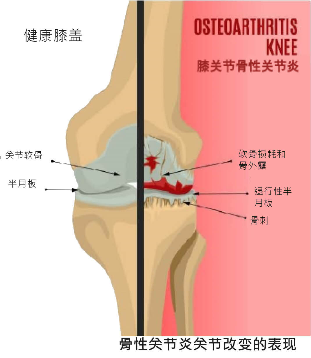 覆蓋在骨頭兩端的軟骨使骨頭能夠順利地相互滑行,只有輕微的摩擦。OA導(dǎo)致軟骨的損壞,并導(dǎo)致摩擦增加 – 導(dǎo)致疼痛,炎癥,并最終導(dǎo)致活動能力和功能的喪失。