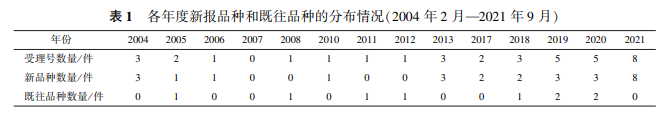 2004年申報(bào)注冊(cè)臨床的品種為3個(gè),且均在召開(kāi)專家會(huì)并補(bǔ)充資料之后批準(zhǔn)其開(kāi)展Ⅰ期臨床試驗(yàn)。 次年,申報(bào)注冊(cè)臨床試驗(yàn) 的受理號(hào)有2個(gè),但其中1個(gè)為既往品種根據(jù)其研究進(jìn)展提交的下一步研究計(jì)劃申請(qǐng),1個(gè)為新品種,見(jiàn)表1。