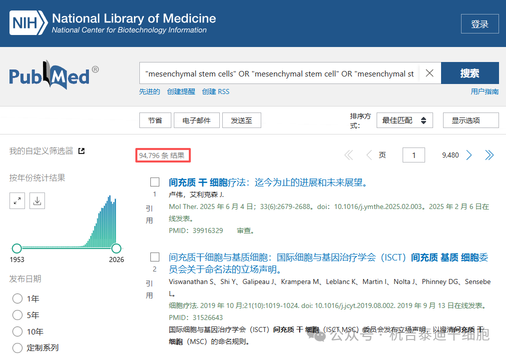 MSCs是研究最為透徹的成體干細(xì)胞之一。目前,關(guān)于其生物學(xué)特性、安全性的全球科學(xué)文獻(xiàn)已有94,796篇。這為臨床轉(zhuǎn)化提供了堅(jiān)實(shí)的循證醫(yī)學(xué)基礎(chǔ)。
