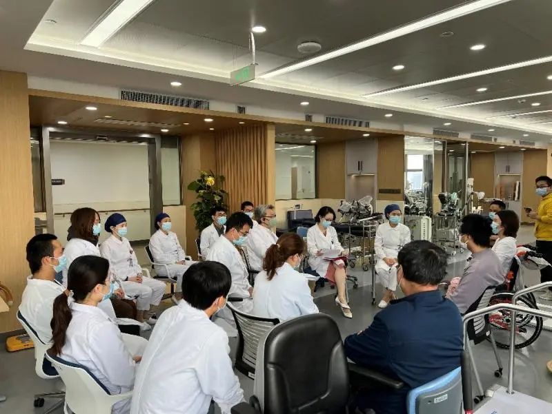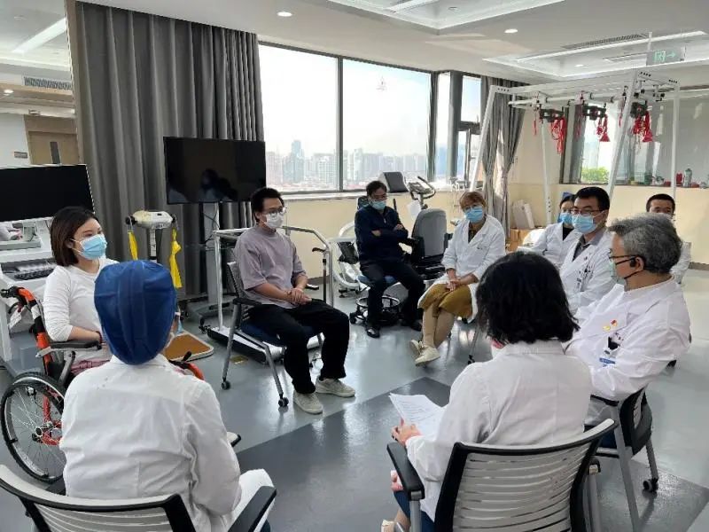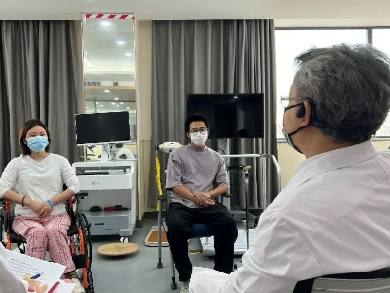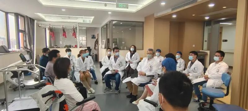 教育處黃蕾副處長(zhǎng)從醫(yī)患溝通、心理疏導(dǎo)等方面對(duì)兩位受試者及家屬進(jìn)行了詢問(wèn)和指導(dǎo),“如果碰到一個(gè)和您有類似遭遇的新患者,您會(huì)如何開導(dǎo)他”,這樣開放式的問(wèn)題讓患者通過(guò)另一個(gè)視角理解和解讀自身的治療過(guò)程和對(duì)疾病診治的認(rèn)識(shí)。病區(qū)護(hù)理部第榮靜護(hù)士長(zhǎng)、項(xiàng)目Sub-PI吳周睿醫(yī)師、康復(fù)組趙麗娟醫(yī)師也從不同角度與趙先生和劉女士這2個(gè)月住院期間的治療體會(huì)進(jìn)行交流。