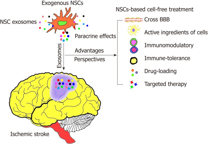 NSCs-外泌體可以克服與干細(xì)胞療法相關(guān)的許多風(fēng)險(xiǎn)和困難。外泌體含有細(xì)胞的活性成分,可自由穿過(guò)血腦屏障,介導(dǎo)免疫調(diào)節(jié),無(wú)免疫耐受,可載藥,可標(biāo)記靶向治療。目前,NSCs-外泌體作為無(wú)干細(xì)胞分子可能是缺血性中風(fēng)干細(xì)胞治療最有希望的治療候選者。