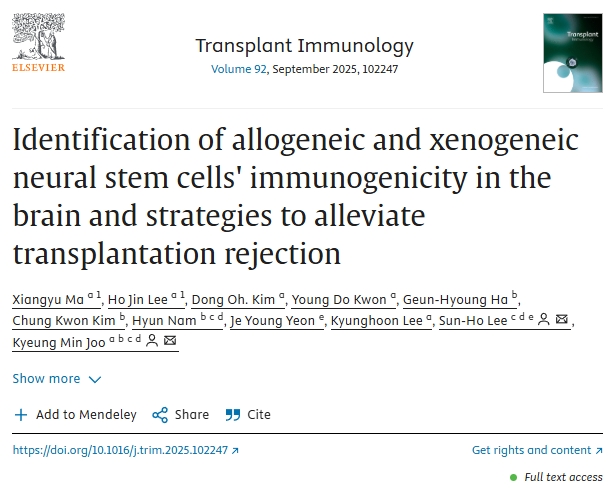 近日 ,國際權(quán)威期刊雜志《Transplant Immunology》發(fā)表了一項(xiàng)“在腦內(nèi)鑒定同種異體及異種神經(jīng)干細(xì)胞的免疫原性以及減輕移植排斥的策略”的研究[1]。