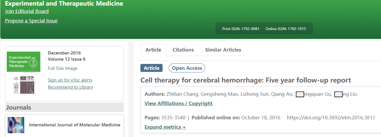 細(xì)胞療法治療腦出血:五年隨訪報告