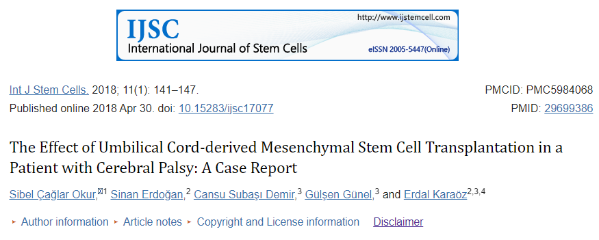 2018年,土耳其伊斯坦布爾麗芙醫(yī)院再生醫(yī)學(xué)和干細(xì)胞制造中心一項(xiàng)病例報(bào)告中,調(diào)查臍帶間充質(zhì)干細(xì)胞移植治療腦癱兒童的安全性和有效性。