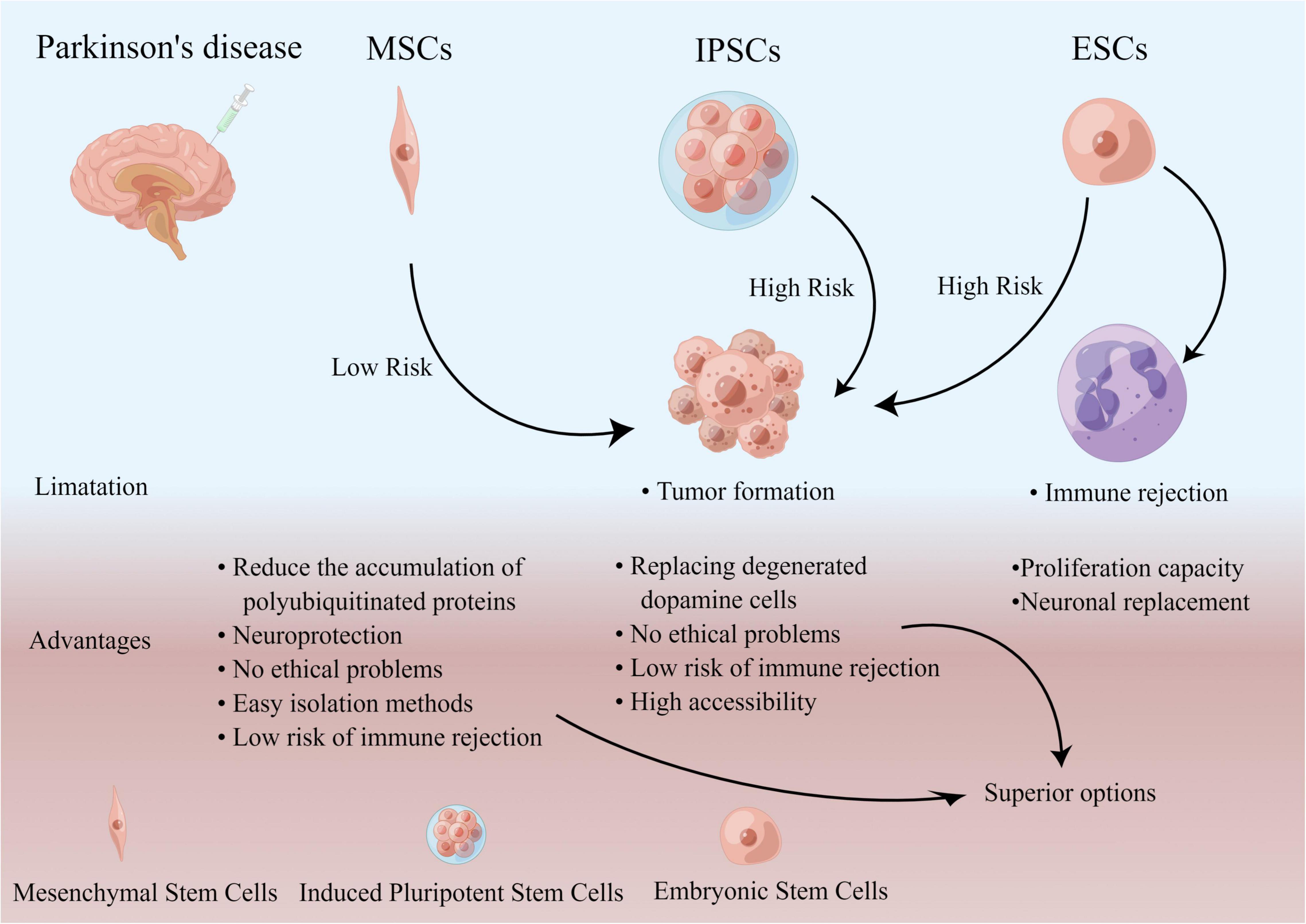 在未來(lái),與以前使用胎兒細(xì)胞的方法相比,完成的ESC誘導(dǎo)的iPSC和MSC可能是更優(yōu)越的選擇(圖4)。