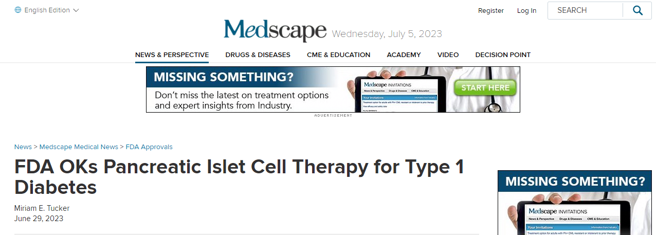 近日,F(xiàn)DA批準(zhǔn)Lantidra,首個治療1型糖尿病的細(xì)胞療法。