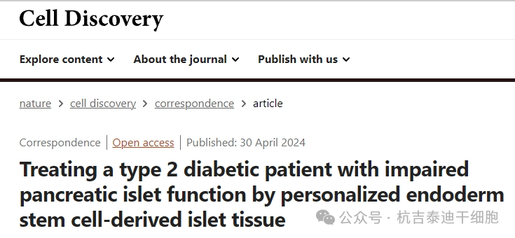 參考資料:[1]:Mallapaty S. Stem cells reverse woman’s diabetes—a world first. Nature. 2024;634(8033):271–2.