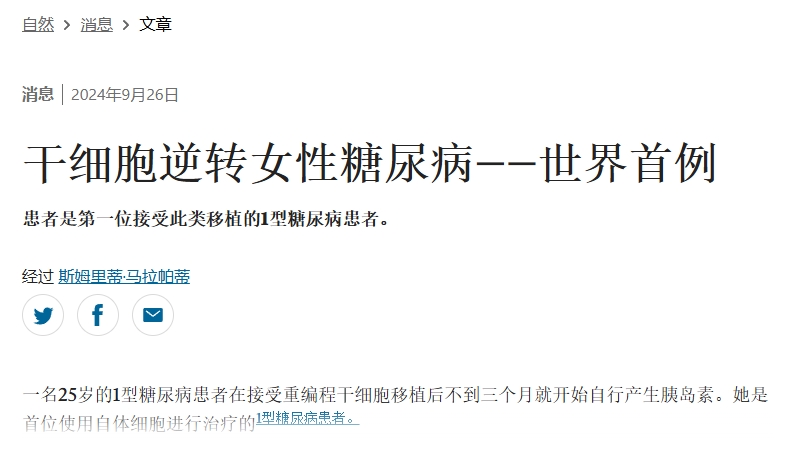 同樣,2024年在中國進(jìn)行的另一項(xiàng)研究表明,一名25歲的1型糖尿病女性不再需要注射胰島素,在移植源自她自身脂肪細(xì)胞并化學(xué)轉(zhuǎn)化為iPSC的產(chǎn)生胰島素的胰島細(xì)胞后75天內(nèi),血糖水平持續(xù)處于健康范圍內(nèi)在一年的隨訪中,所有安全性和有效性結(jié)果均得到滿足,沒有出現(xiàn)移植相關(guān)異常的跡象。
