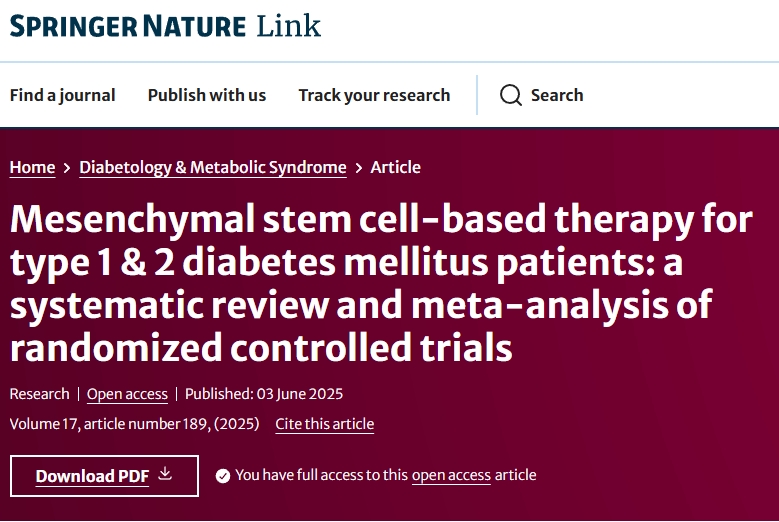 主要參考資料:[1]Kashbour, M., Abdelmalik, A., Yassin, M.N.A. et al. Mesenchymal stem cell-based therapy for type 1 & 2 diabetes mellitus patients: a systematic review and meta-analysis of randomized controlled trials. Diabetol Metab Syndr 17, 189 (2025). https://doi.org/10.1186/s13098-025-01619-6