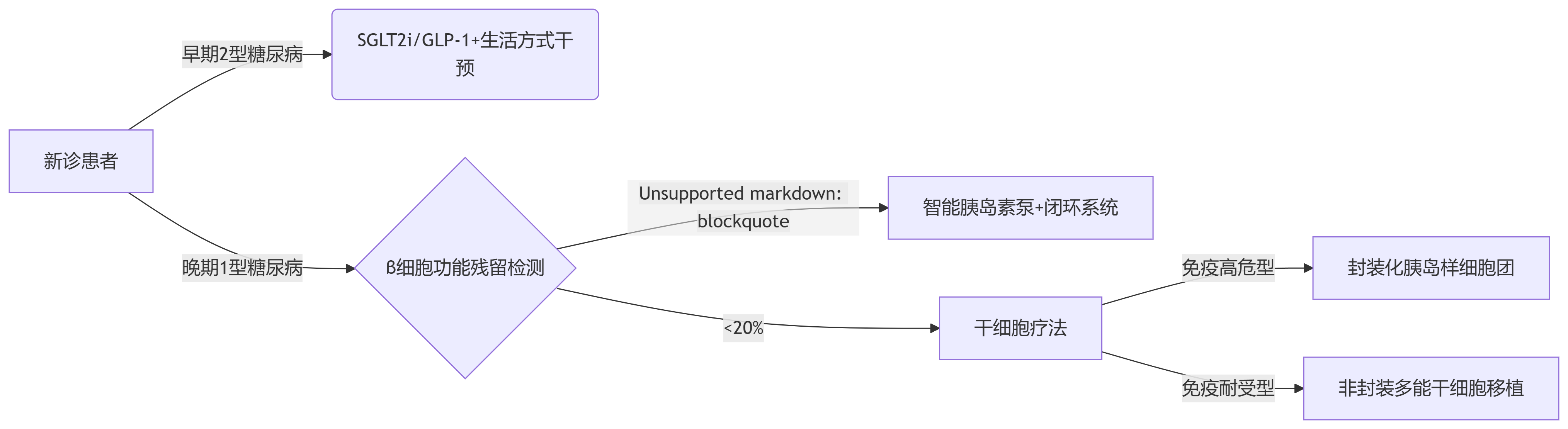專家共識(shí)(根據(jù)ADA 2025白皮書):干細(xì)胞療法將優(yōu)先用于C肽陰性、頻發(fā)低血糖的1型糖尿病患者,5年內(nèi)有望替代30%的胰島素強(qiáng)化治療;而對(duì)胰島素敏感且控制良好的2型糖尿病患者,干細(xì)胞治療仍需長(zhǎng)期安全性驗(yàn)證。