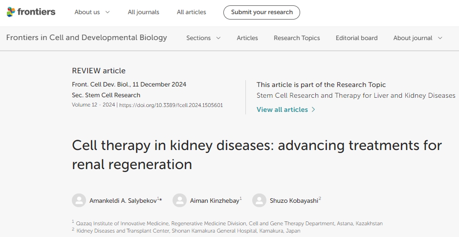 近日,期刊雜志《Frontiers in Cell and Developmental Biology》發(fā)表了一篇“Cell therapy in kidney diseases: advancing treatments for renal regeneration”的期刊綜述。該綜述全面概述了腎臟疾病細(xì)胞療法的現(xiàn)狀,追溯了從臨床前研究到臨床應(yīng)用的進(jìn)展[1]。