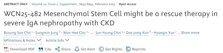 WCN25-482 Mesenchymal Stem Cell might be a rescue therapy in severe IgA nephropathy with CKDCho, Byoung Soo et al.Kidney International Reports, Volume 10, Issue 2, S633 – S634