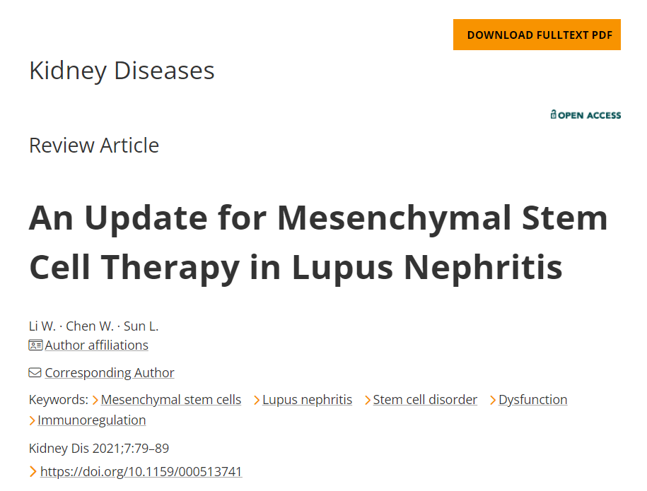 因此,仍然迫切需要新的療法。間充質(zhì)干細胞 (MSCs) 對免疫反應(yīng)具有有效的免疫抑制調(diào)節(jié)作用,靜脈內(nèi)移植間充質(zhì)干細胞可改善疾病癥狀,并已成為狼瘡腎炎的潛在有益療法。南京大學(xué)醫(yī)學(xué)院附屬鼓樓醫(yī)院風(fēng)濕免疫科的目的是討論間充質(zhì)干細胞在狼瘡腎炎動物模型和患者治療中的應(yīng)用。
