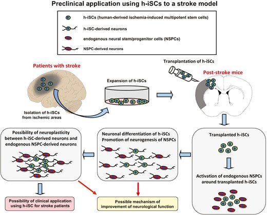 中風(fēng)后人腦中iSC具有神經(jīng)元分化潛力的證據(jù)表明,iSC具有再生缺血性中風(fēng)后受損大腦的潛力。此外,iSC是在缺血性中風(fēng)等病理?xiàng)l件下特異性誘導(dǎo)的干細(xì)胞。因此,如果能夠?qū)χ酗L(fēng)患者使用基于人源iSC (h-iSC) 的療法,那將是理想的選擇。