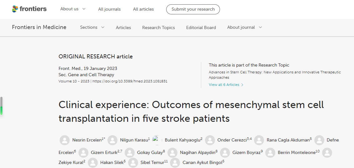 在第三項原創(chuàng)研究中,Ercelen等人介紹了他們使用異體臍帶間充質(zhì)干細(xì)胞治療中風(fēng)患者的經(jīng)驗。