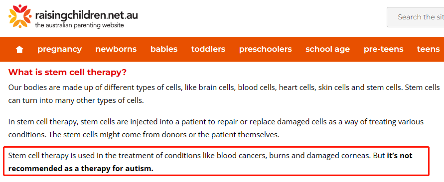 讓人失望的是,2022年12月6日全國醫(yī)學委員會(NMC)的倫理和醫(yī)學注冊委員會(EMRB)提出建議不得使用干細胞治療ASD。EMRB的建議是基于一些科學和倫理考慮,他們認為,“使用、推廣和廣告干細胞治療可能會導致專業(yè)行為不當”。這也讓許多正在接受或打算接受干細胞治療的ASD患者會面臨治療中斷。