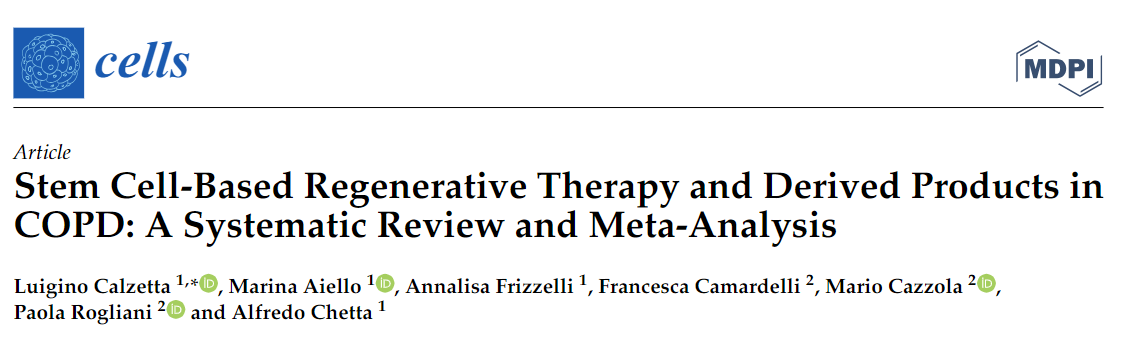 2022年5日,《細(xì)胞》雜志上發(fā)布了一篇標(biāo)題為“基于干細(xì)胞的再生療法及其衍生產(chǎn)品在慢性阻塞性肺病 (COPD) 中的系統(tǒng)評(píng)價(jià)和薈萃分析”的研究。這項(xiàng)研究綜合評(píng)估了11個(gè)相關(guān)研究,并匯集了總計(jì)371名COPD患者的數(shù)據(jù)進(jìn)行分析。