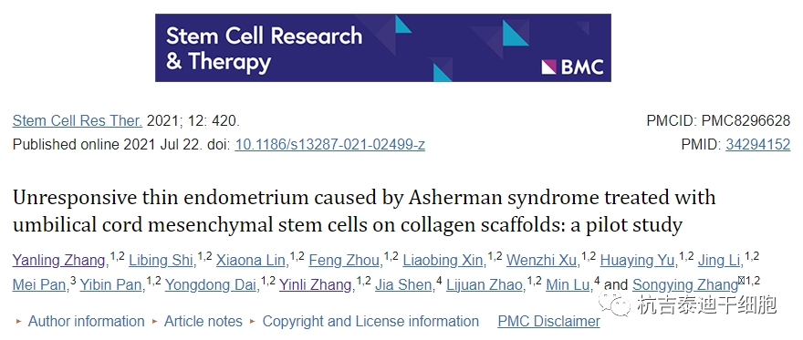 2021,浙江大學(xué)醫(yī)學(xué)院附屬邵逸夫醫(yī)院婦產(chǎn)科輔助生殖科張等人提供的研究中,選擇了17名患有Asherman綜合征的女性,作者嘗試通過膠原支架/臍帶間充質(zhì)干細(xì)胞(CS/UC-MSC)移植來再生子宮內(nèi)膜組織并提高懷孕機(jī)會(huì),看看這種療法是否可以幫助那些傳統(tǒng)方法沒有效果的人。(該論文發(fā)表在干細(xì)胞研究與治療雜志上)