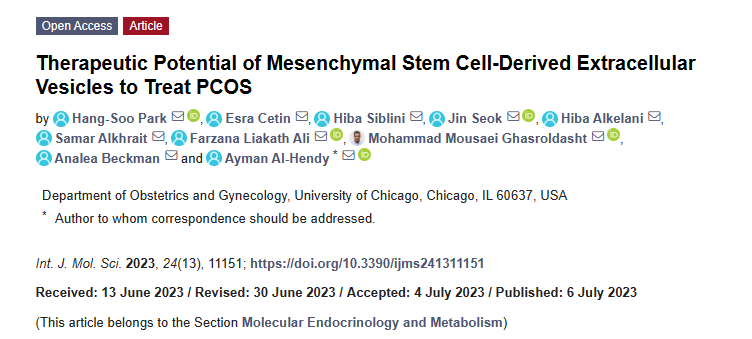 此前,芝加哥大學(xué)研究者就發(fā)現(xiàn)間充質(zhì)干細(xì)胞(MSC)能通過分泌因子來逆轉(zhuǎn)PCOS的進(jìn)程,但彼時(shí)的他們并未弄清其中機(jī)制,如今研究者終于發(fā)現(xiàn):間充質(zhì)干細(xì)胞衍生細(xì)胞外囊泡(此處主要指代外泌體)可能是治療的“主攻手”,它能調(diào)節(jié)雄激素產(chǎn)生并恢復(fù)生育能力的主要分子,改善卵巢功能,有望成為PCOS患者的治療新選擇。