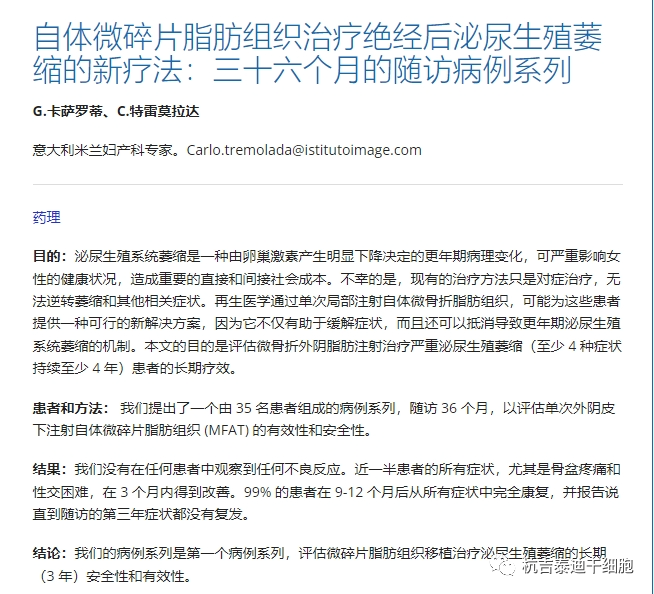 與迄今為止可用的所有其他療法(例如激光療法、射頻、磁刺激、局部雌激素療法等)相比,GSM治療的這些結(jié)果使MSC成為最持久的療法,并且由于沒有描述任何副作用,也完全安全。
