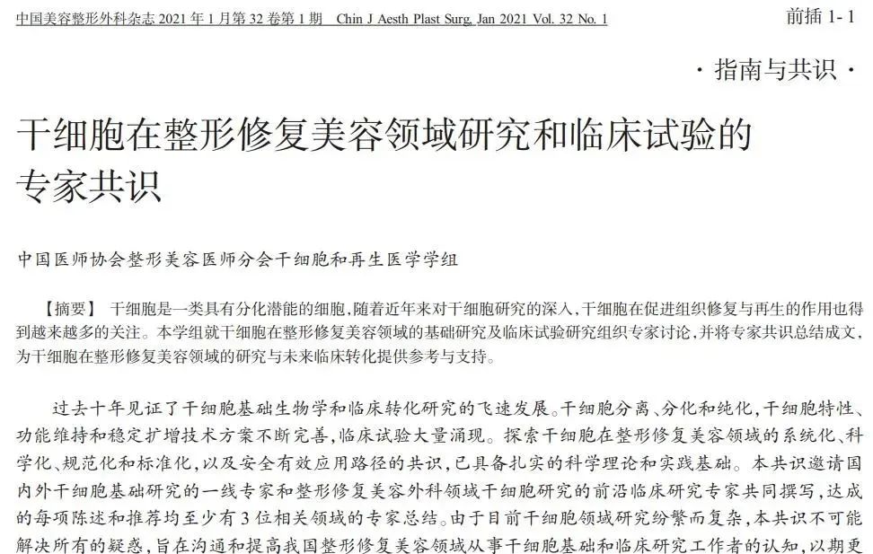 發(fā)布機構(gòu):中國醫(yī)師協(xié)會整形美容醫(yī)師分會干細胞和再生醫(yī)學(xué)學(xué)組