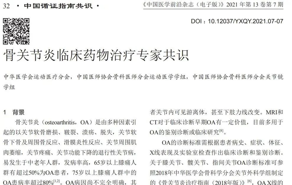▉ 07 骨關(guān)節(jié)炎臨床藥物治療專家共識