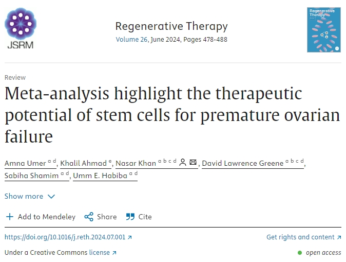 2024年6月,國(guó)家期刊雜志《Regenerative Therapy》發(fā)表了一篇一項(xiàng)薈萃分析強(qiáng)調(diào)了干細(xì)胞治療卵巢早衰的潛力的文章[3]。