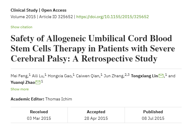 因此,本回顧性研究旨在評(píng)估干細(xì)胞治療嚴(yán)重腦癱患者的安全性。