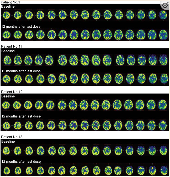 圖4:干預(yù)后腦代謝變化。干預(yù)后對(duì)照組SUV無明顯變化。然而,在最后一次給藥后12個(gè)月,來自hUC-MSC組的5名患者中有3名顯示SUV顯著增加(第11、12和13號(hào)患者)。