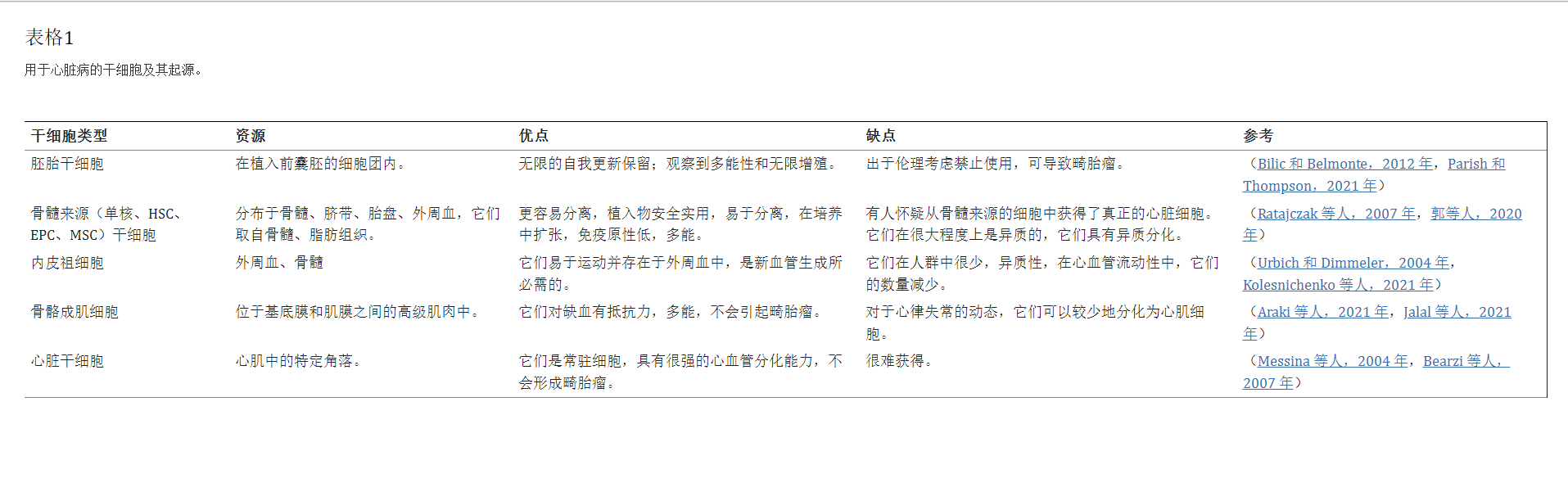用于治療心血管疾病的干細(xì)胞來源及類型