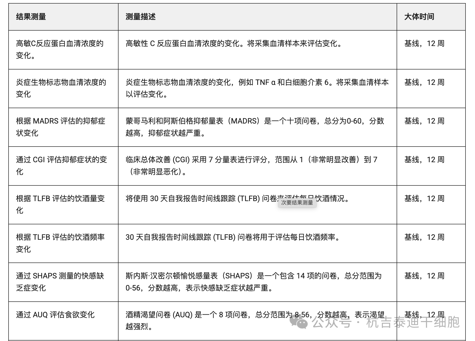 臨床試驗(yàn)二:同種異體人類間充質(zhì)干細(xì)胞輸注與安慰劑在酒精使用障礙和重度抑郁癥中的比較