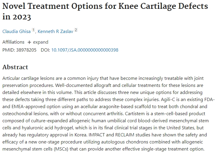 2023年膝關(guān)節(jié)軟骨缺損的新型治療方案