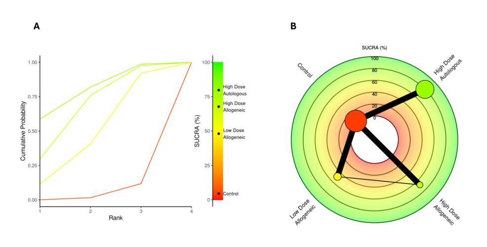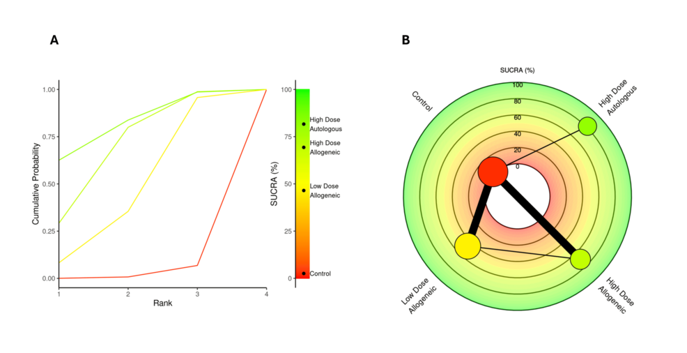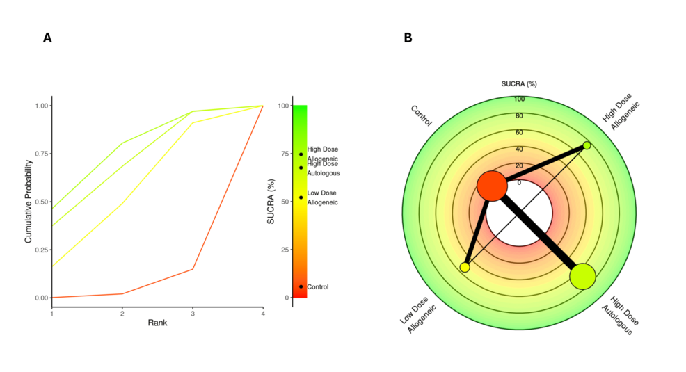 SUCRA 排名:高劑量異基因AD-MSCs略優(yōu),自體組緊隨其后