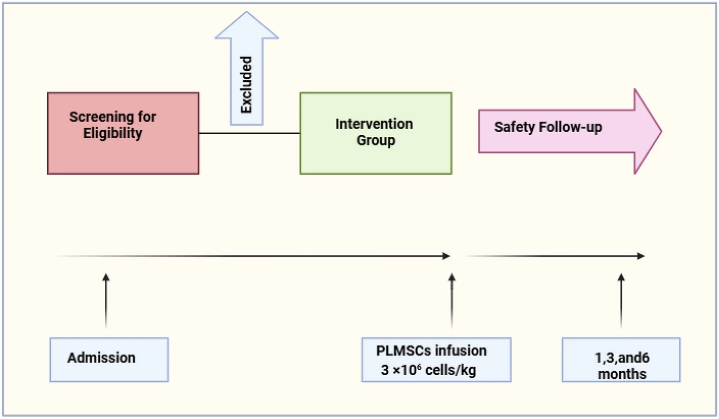 本研究項目(包括胎盤捐贈和PLMSCs制備過程)已獲得“德黑蘭醫(yī)科大學(xué)”教育、文化和研究倫理委員會的批準(zhǔn)。圖1展示了臨床試驗的設(shè)計和患者流程。