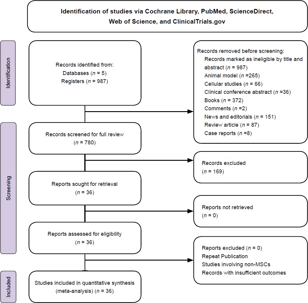 方法:這項薈萃分析僅限于已發(fā)表的評估靜脈注射MSC安全性的隨機對照臨床試驗,并通過搜索眾多目錄來查找合格研究,包括 Cochrane Library、PubMed、ScienceDirect、Web of Science 和 ClinicalTrials.gov(從建庫至2024年12月31日)。