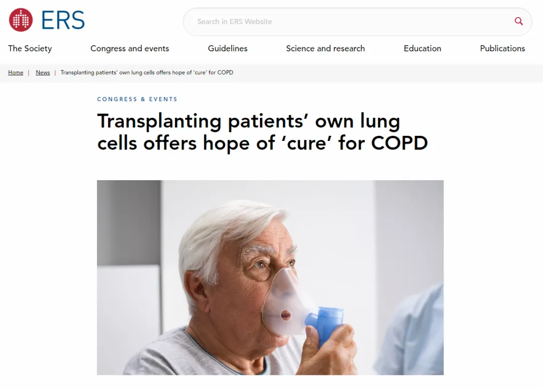 9月27日至10月1日,在全球呼吸領(lǐng)域頂級會議——第35屆歐洲呼吸學會(European Respiratory Society,ERS)年會上,一項標志著慢性阻塞性肺疾?。–OPD)治療進入再生醫(yī)學新紀元的突破性臨床研究正式公布。[10]