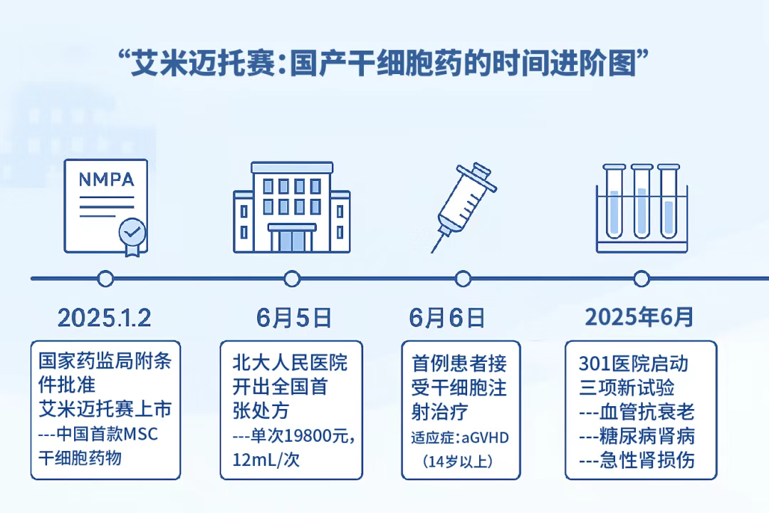 2025年1月2日,國(guó)家藥監(jiān)局通過優(yōu)先審評(píng)審批程序,附條件批準(zhǔn)艾米邁托賽注射液上市。這款藥物核心成分是人臍帶間充質(zhì)干細(xì)胞,符合嚴(yán)格的藥品生產(chǎn)質(zhì)量管理規(guī)范(GMP)標(biāo)準(zhǔn)。