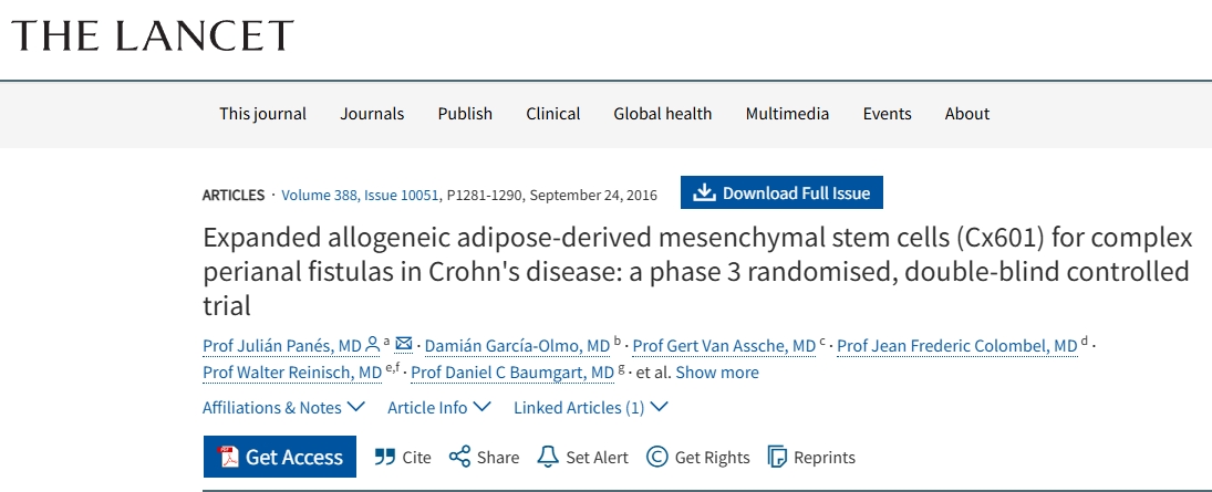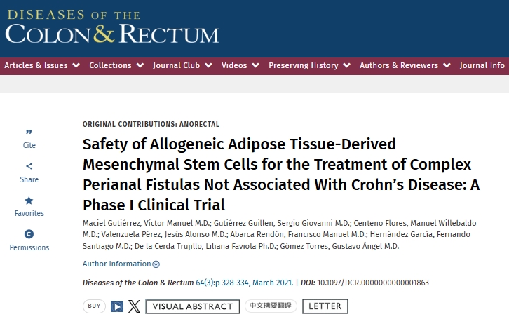 2021年,Maciel等人進(jìn)行了一項“同種異體脂肪組織來源的間充質(zhì)干細(xì)胞治療與克羅恩病無關(guān)的復(fù)雜性肛周瘺的安全性:I期臨床試驗(yàn)的研究”,旨在評估同種異體間充質(zhì)干細(xì)胞 (MSC) 治療非克羅恩病患者的復(fù)雜性肛瘺的安全性。
